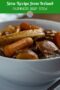 My vegetables of choice are parsnips, carrots, onions and potatoes cut into bite-size pieces. You can add turnips or rutabaga if you wish, or some celery can also be used.