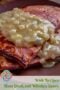 Place the hot ham steaks on plates and spoon the whiskey onion sauce generously over the top.