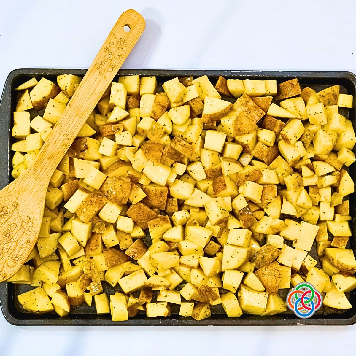 Meet my Ranch Sheet Pan Roast Potatoes. They're crispy, golden, and bursting with the savory flavors of ranch seasoning.